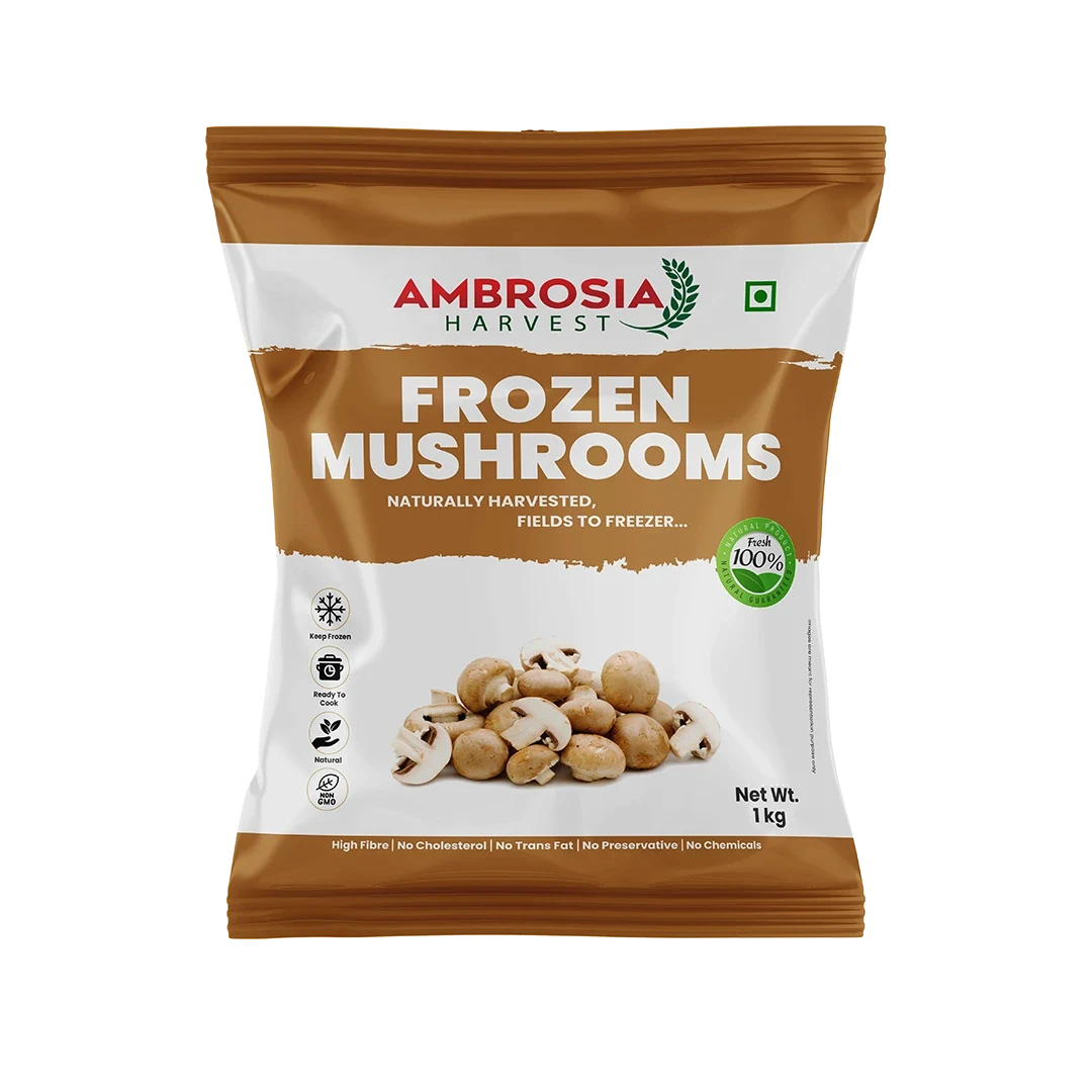 Ambrosia Harvest Frozen Mushrooms are prepared from fresh, premium-quality mushrooms carefully sourced from trusted growers. The mushrooms are cleaned, trimmed, sliced or cut, lightly blanched. And individually quick frozen (IQF) to preserve their natural color, earthy flavor, tender texture, and nutritional value. Free-flowing and ready to cook, this product contains no added salt, preservatives, or artificial colors.