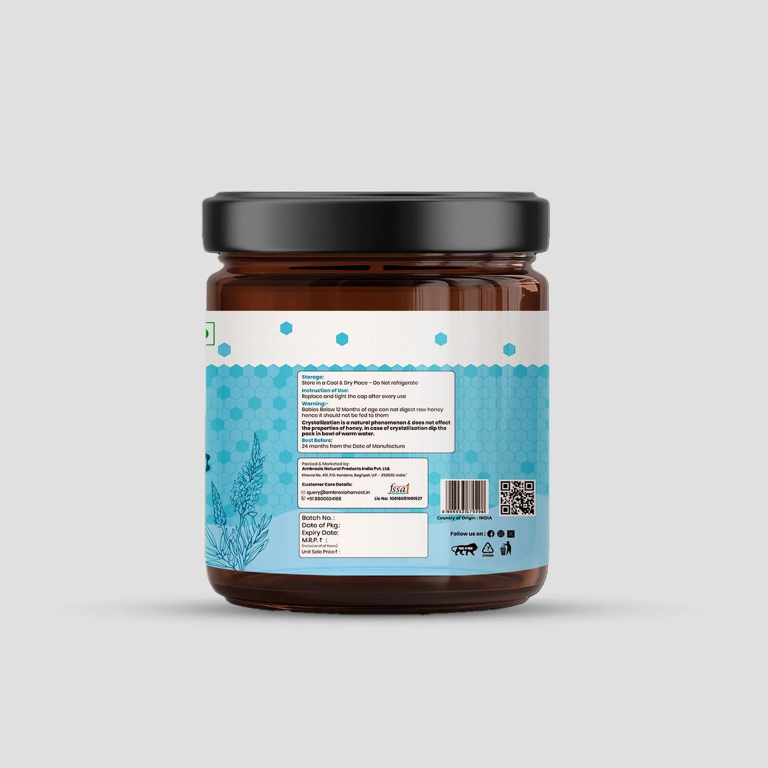 Ambrosia Natural Products India Pvt. Ltd. Khasra No. 491, P.O. Kandera, Baghpat, U.P. – 250620, India.