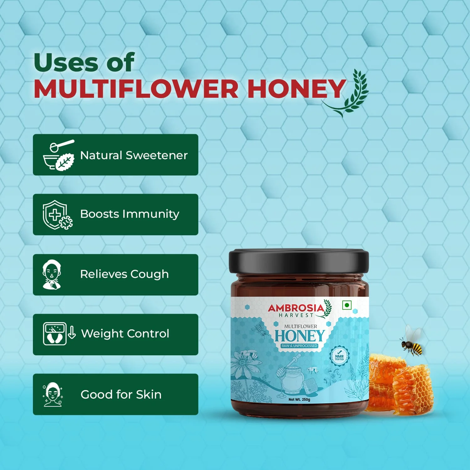 It consists solely of raw and unprocessed Multiflora Honey.
